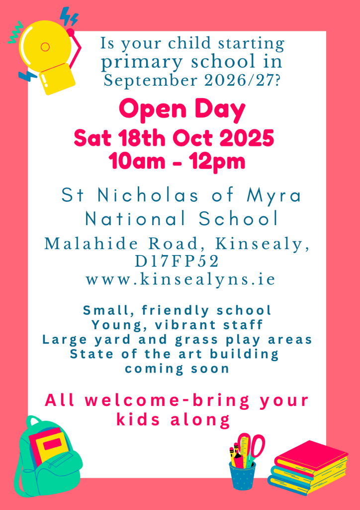 A small vibrant primary school located in Kinsealy, North Co. Dublin. News Open Day 2025 Open Day LauraLynn Thank you all for your wonderful support Wellness Week Thankful Tuesday in our Outside Classroom